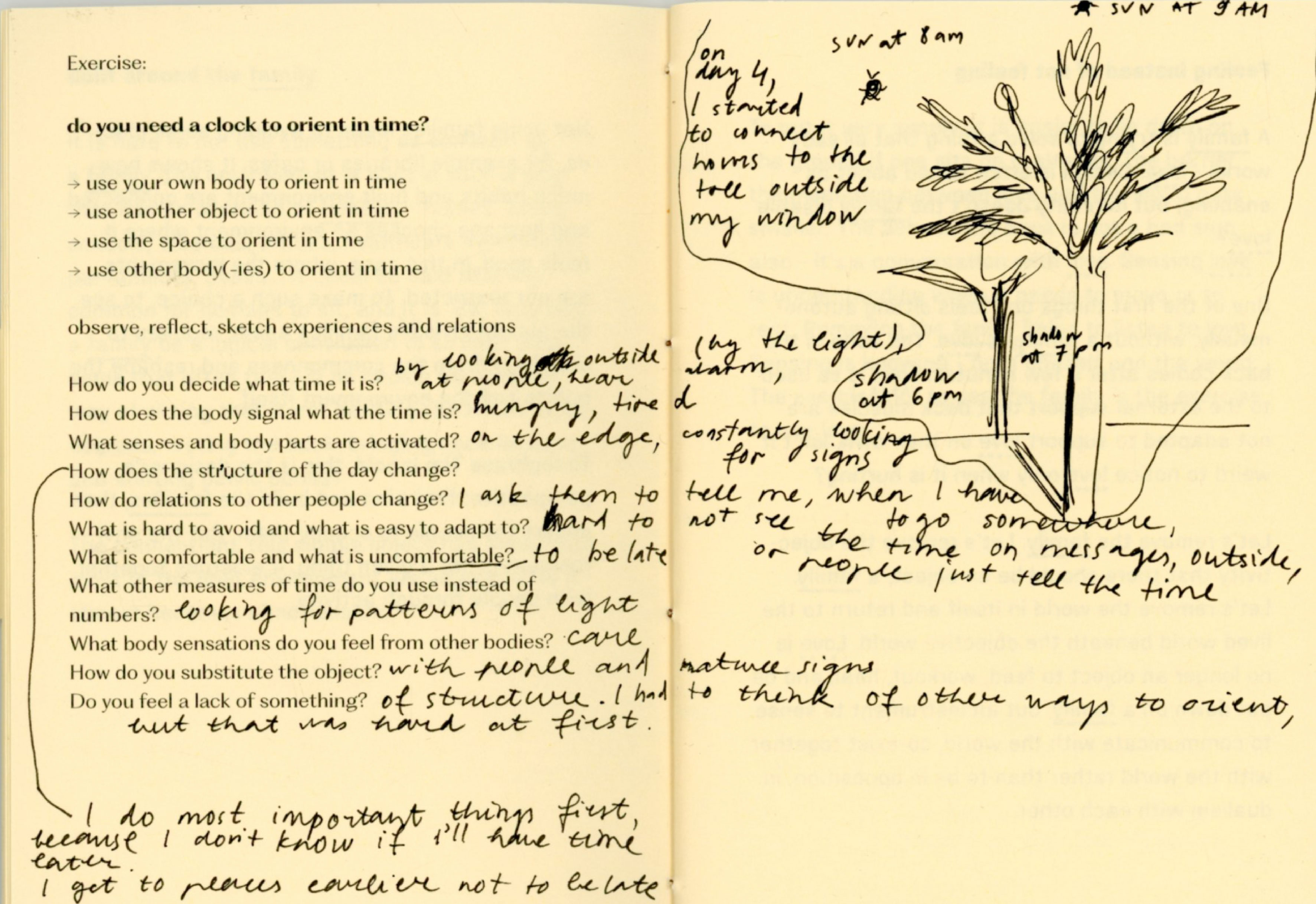 After the experiment I feel more aware of my right to choose not to, to choose otherwise, to choose on my own, to choose in relation to. Now I feel the right to look at the moon in the evenings instead of the numbers in the calendar. Why couldn't I before?